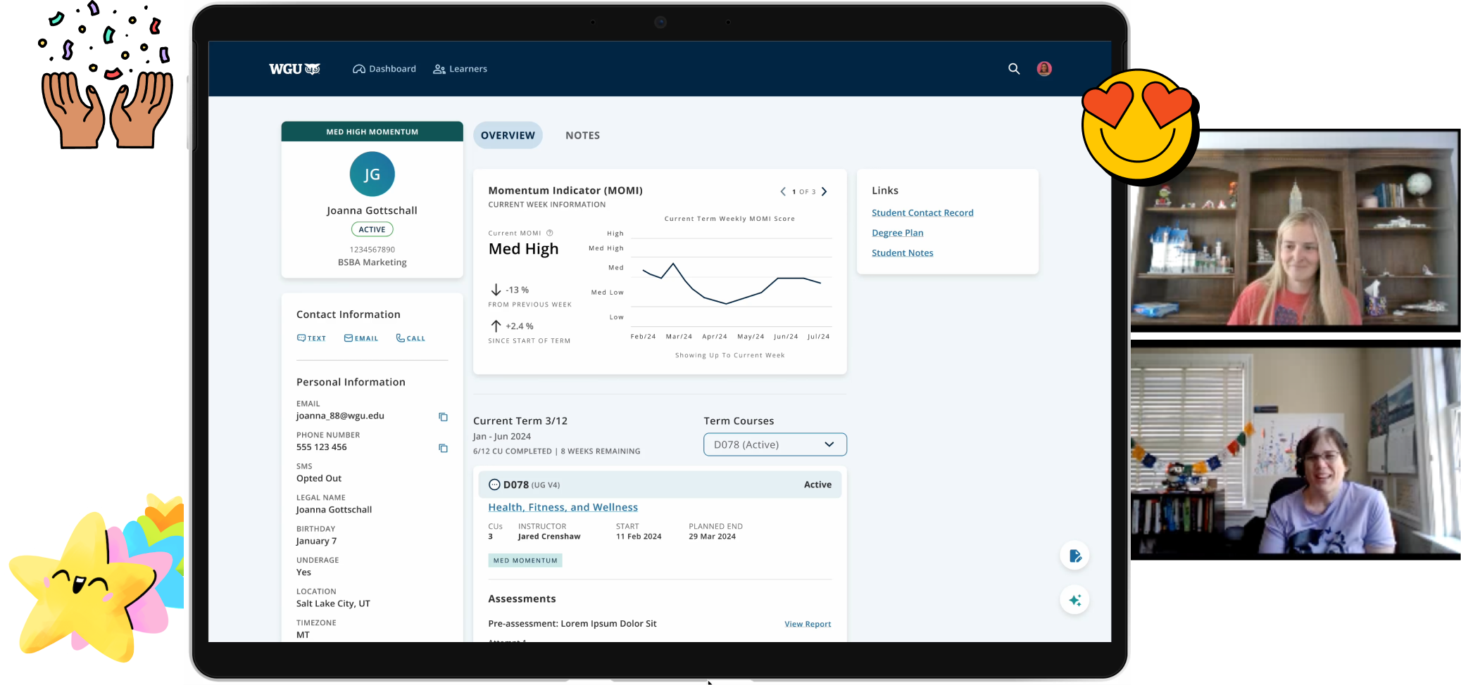 Learner 360 website design - Student Notes feature